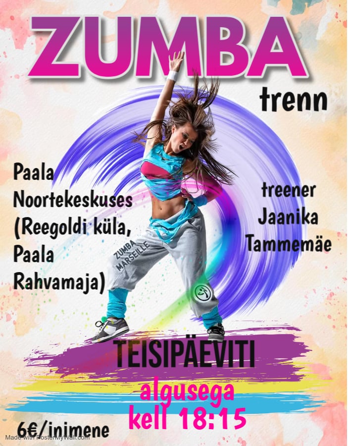 Alates 02. septembrist algab uus Zumba hooaeg Paala Noortekeskuses. Trennid toimuvad teisipäeviti kell 18.15 Osalustasu:…