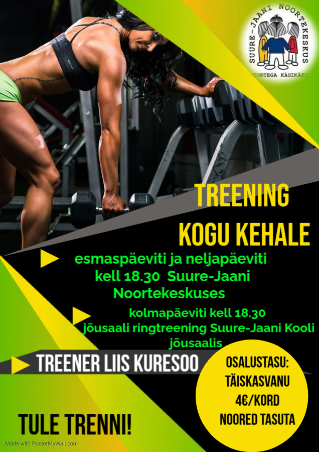 Alates.3. septembrist ootab treener Liis Kuresoo jälle kõiki huvilisi kogu keha treeningule. Treeningud toimuvad esmaspäeviti ja neljapäeviti kell 18.30 Suure-Jaani